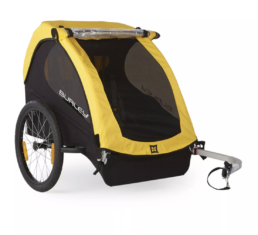 Spezifikationen: Zweisitziger Fahrradanhänger mit 20-Zoll-Tasterrädern. Wasserabweisender Bezug und Sitzbezug aus 600D Polyester.